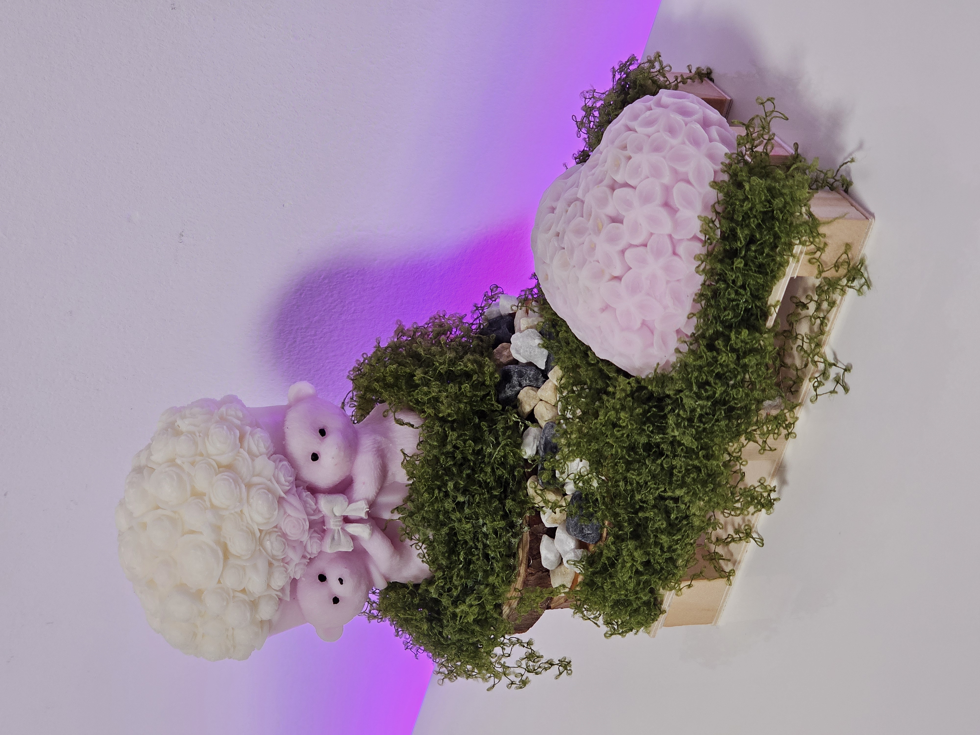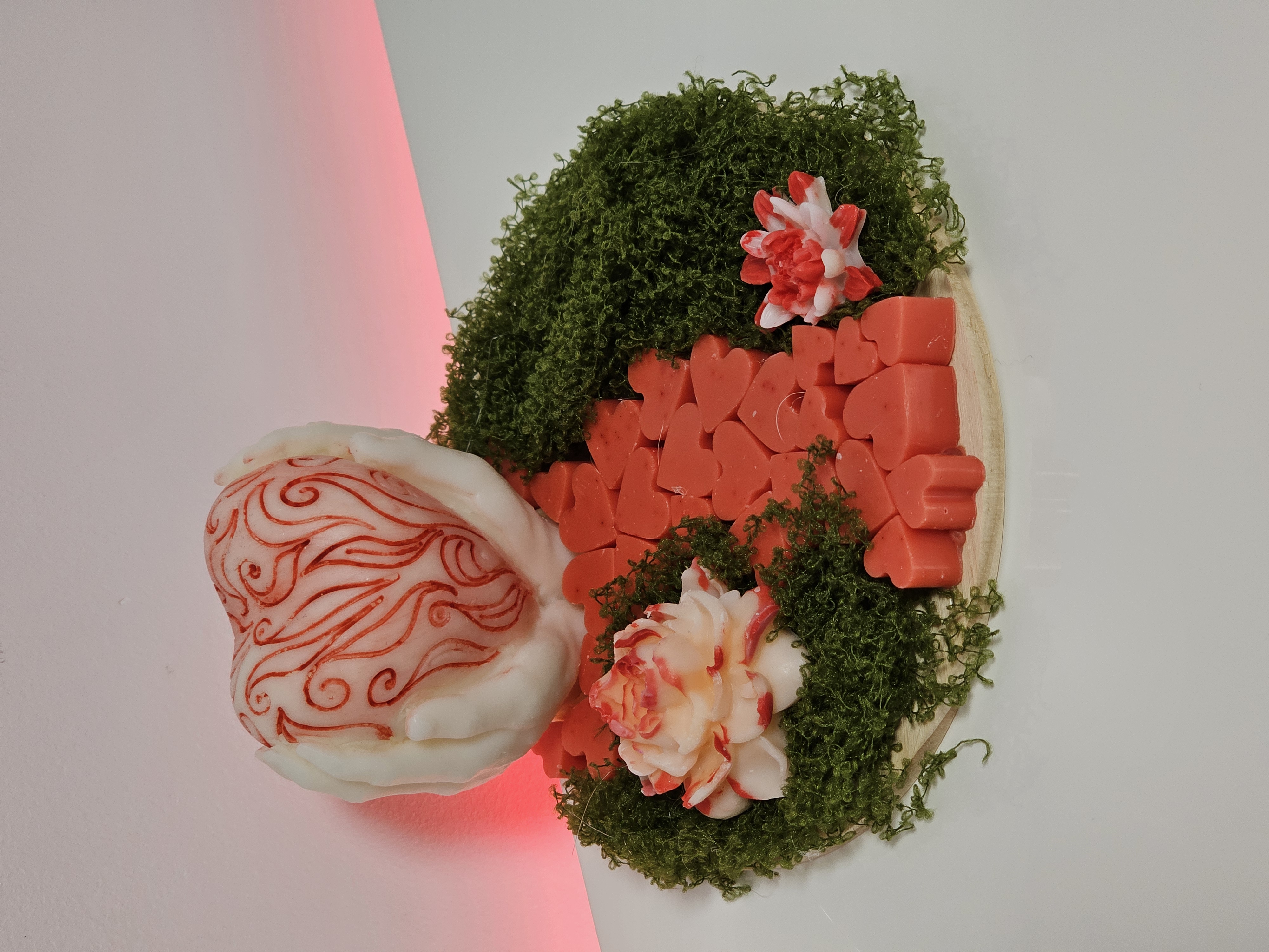 Nu am început cu lumânările clasice cu fitil, ci cu ornamente din ceară de soia — mici opere de artă parfumate.