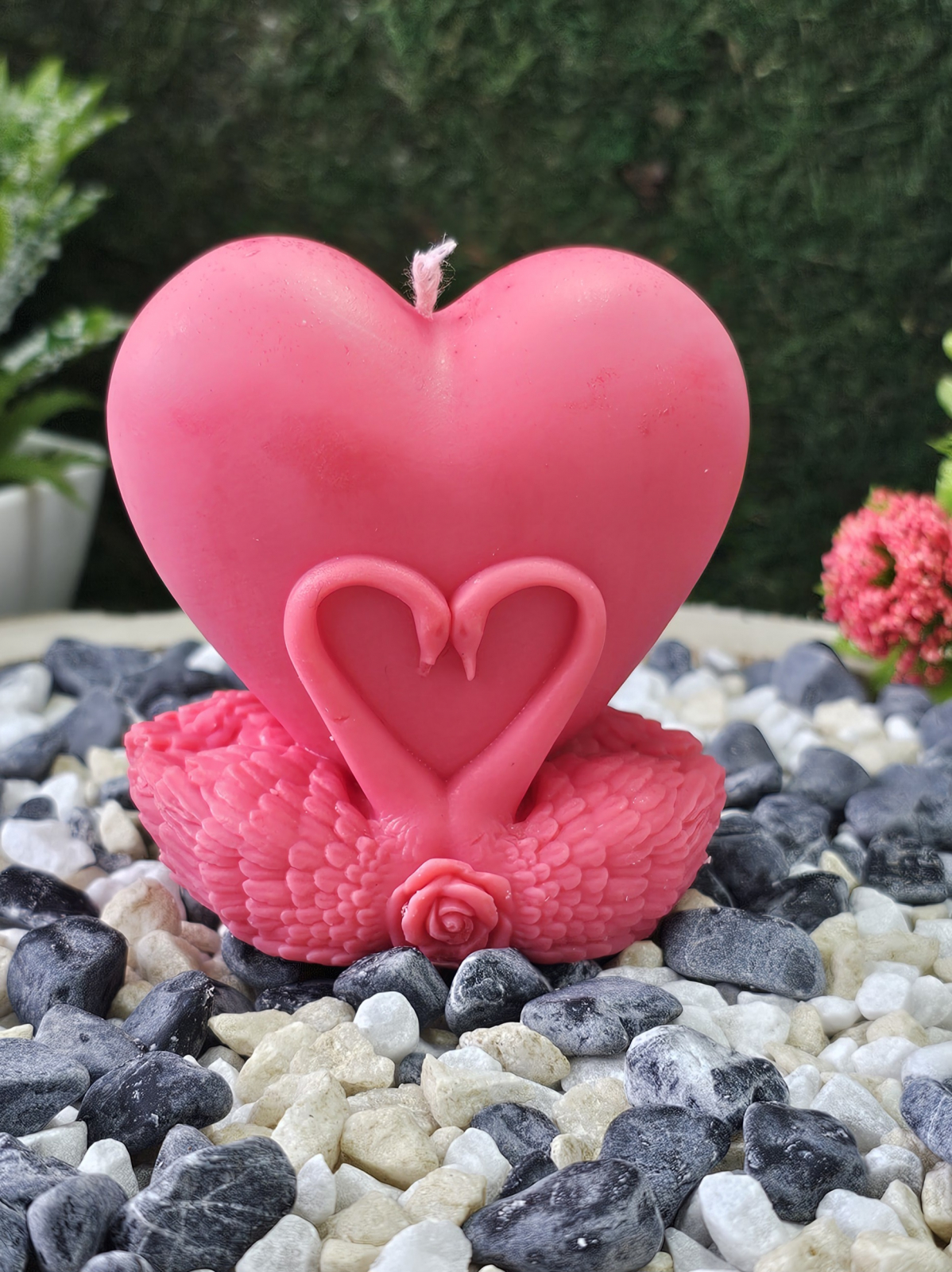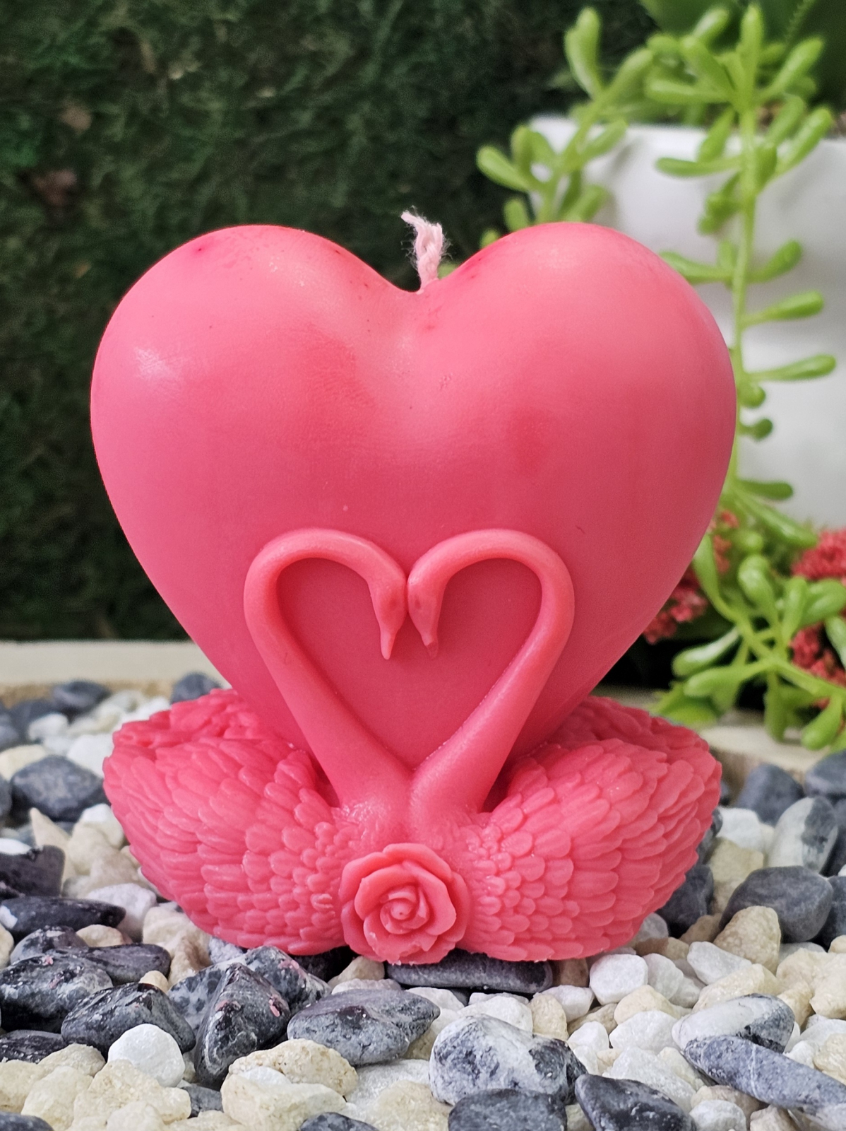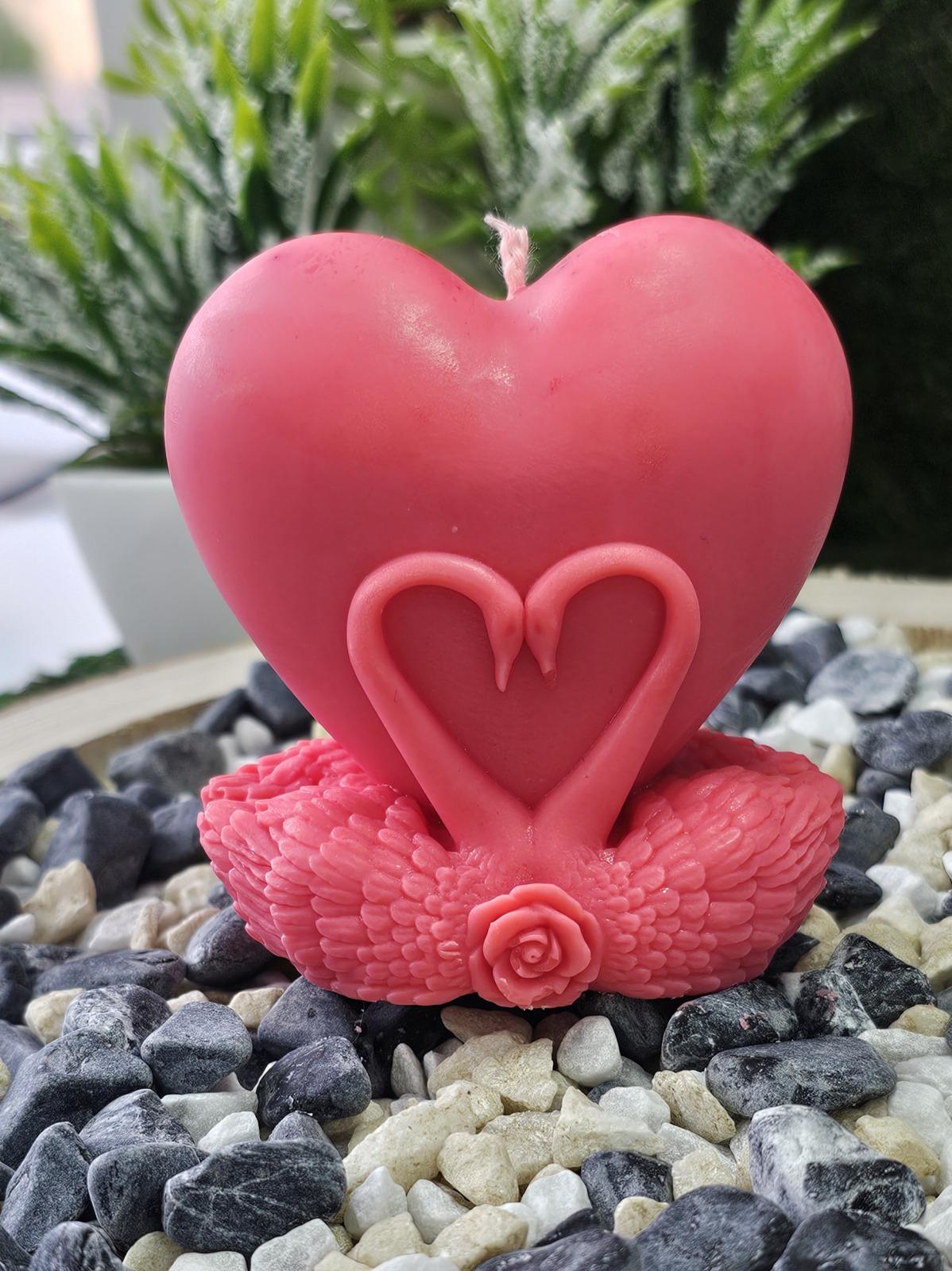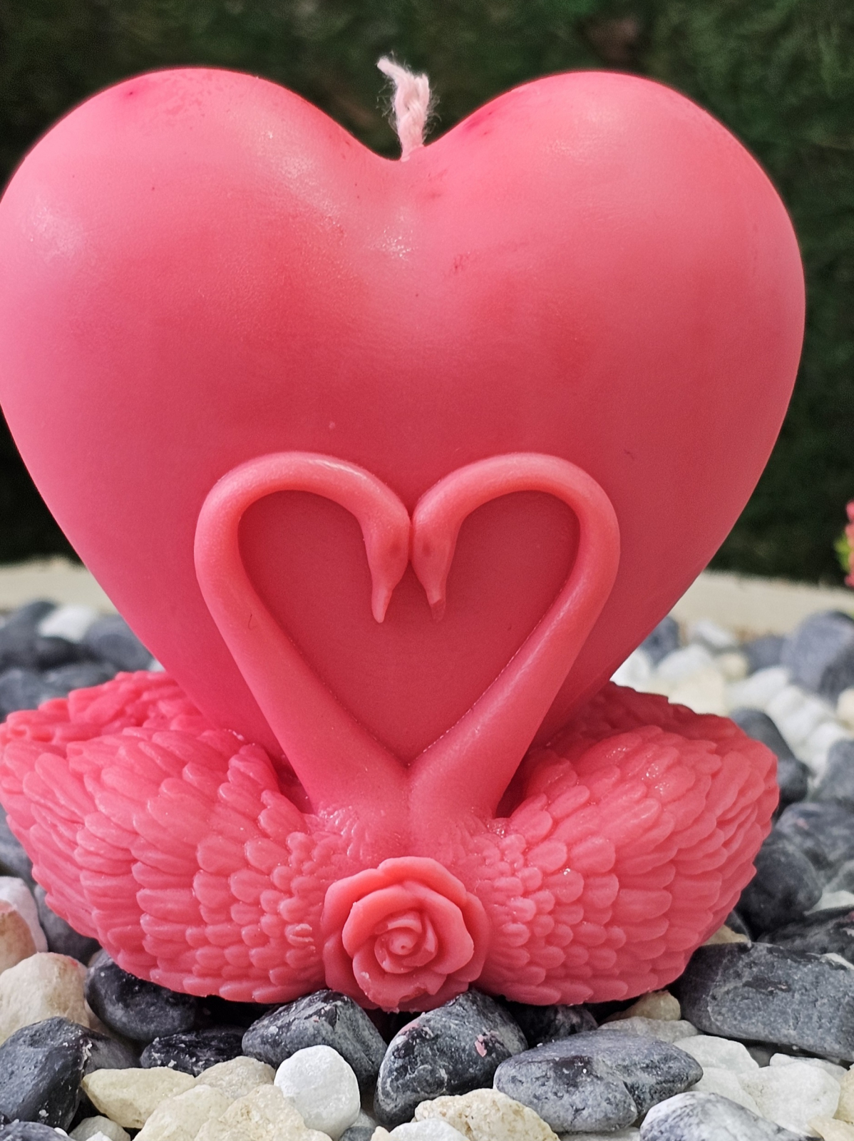Inspirată de iubirea statornică și grația naturală a lebedelor, această lumânare în formă de inimă este un simbol al armoniei și al sufletelor pereche. Cele două lebede se întâlnesc într-o îmbrățișare elegantă, purtând un trandafir delicat — o declarație de dragoste eternă.