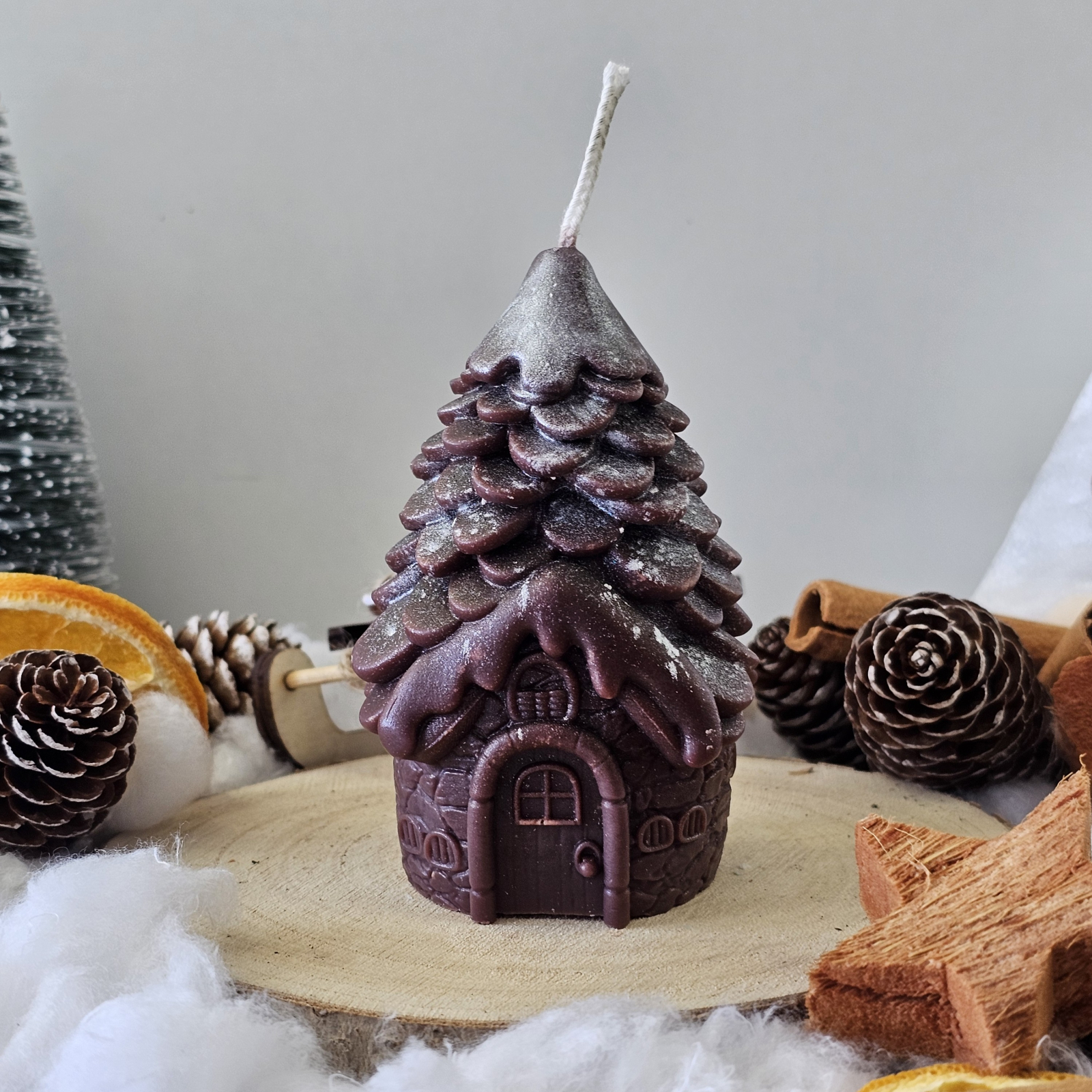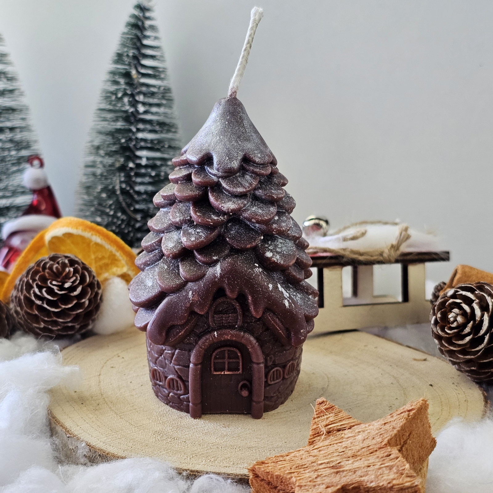 O lumânare decorativă care aduce magia sărbătorilor direct în sufletul casei tale. Turnată manual din ceară de soia 100% naturală, „Căsuța din Poveste – Magia Sărbătorilor” îmbină farmecul unei ierni de poveste cu rafinamentul detaliilor lucrate cu grijă.