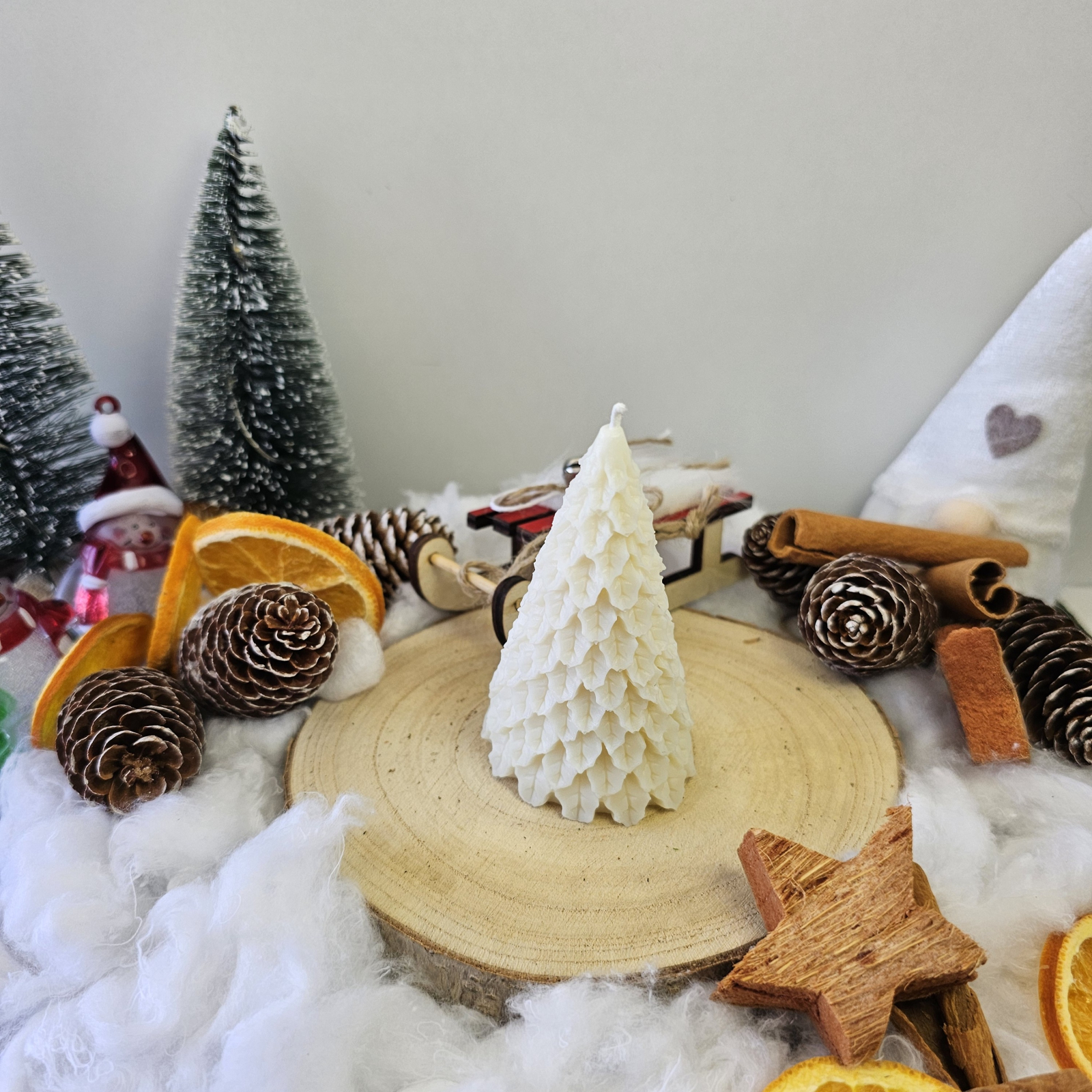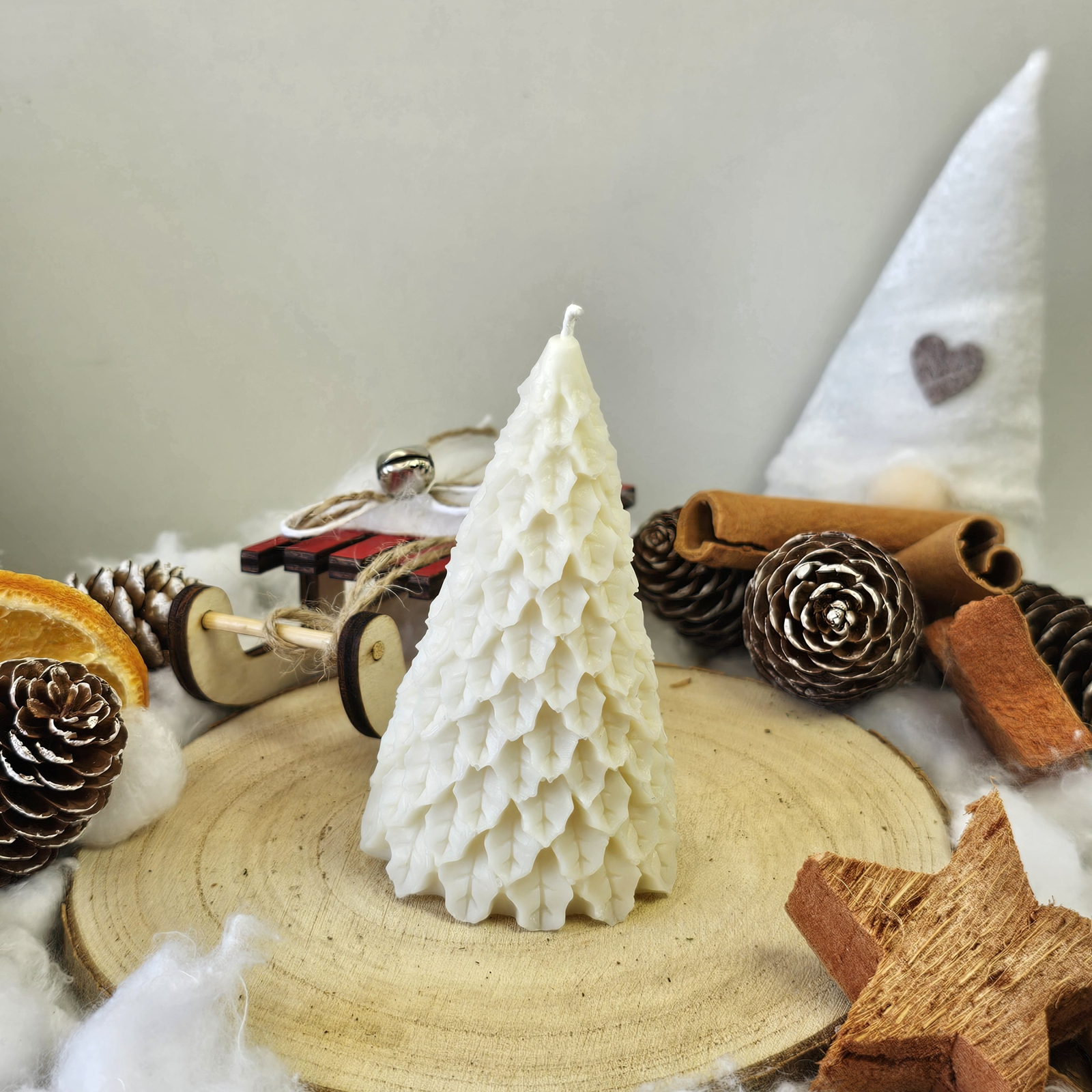 Lumânarea decorativă „Sărbătoare în Fitil” aduce farmecul iernii în forma unui brăduț alb, delicat și festiv. Turnată manual din ceară de soia 100% naturală, este însoțită de detalii care evocă serile cozy și magia sărbătorilor. Fie că o alegi parfumată sau neparfumată, această lumânare transformă orice spațiu într-un colț de poveste — perfectă pentru decoruri de sezon, cadouri cu suflet sau momente de răsfăț vizual.