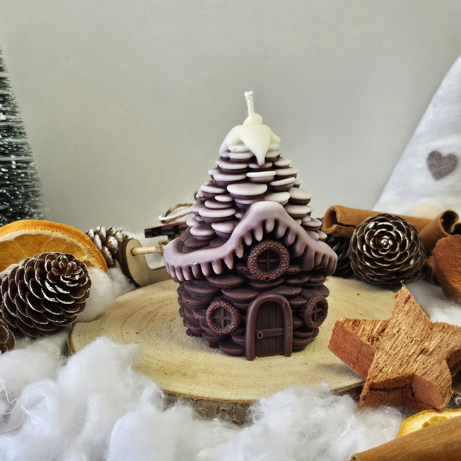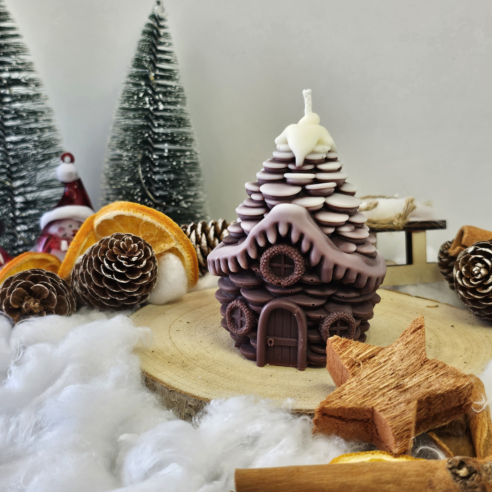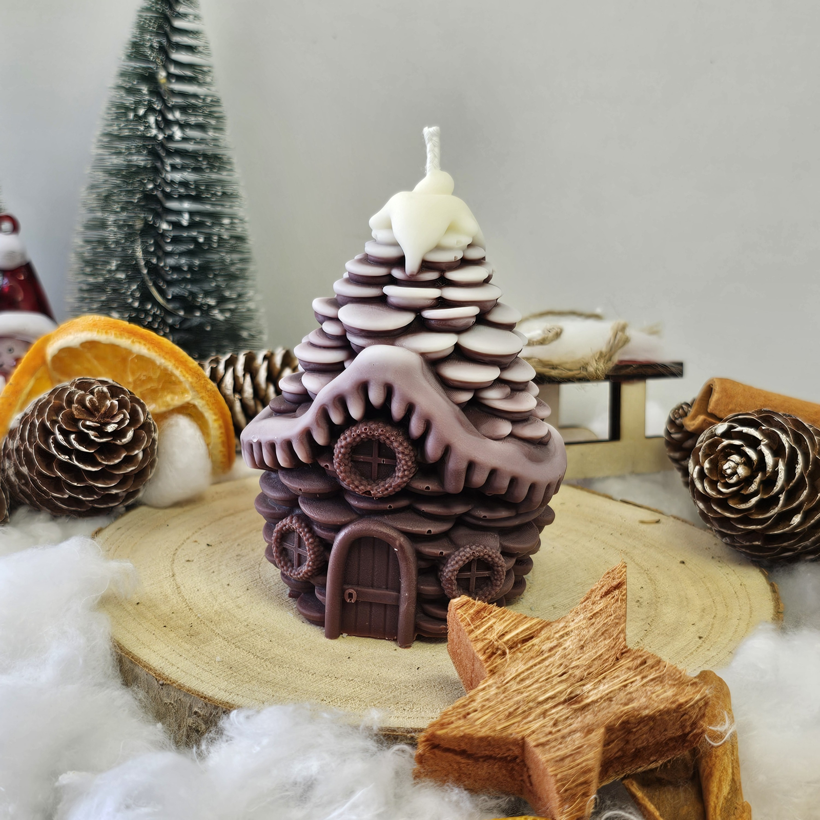 O lumânare decorativă care pare desprinsă dintr-un basm de iarnă. „Căsuța din Poveste – Fulgi de Vis” este turnată manual din ceară de soia 100% naturală, într-o formă unică ce amintește de o căsuță acoperită de zăpadă, cu acoperiș conic și detalii fermecătoare.