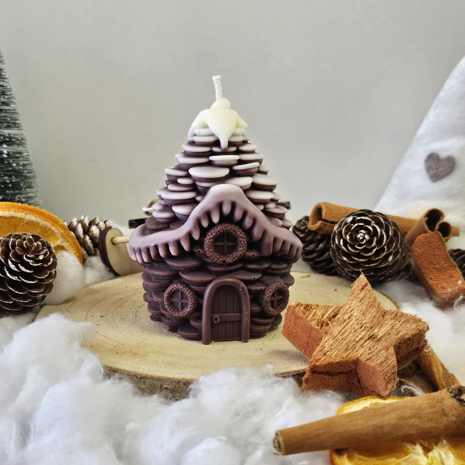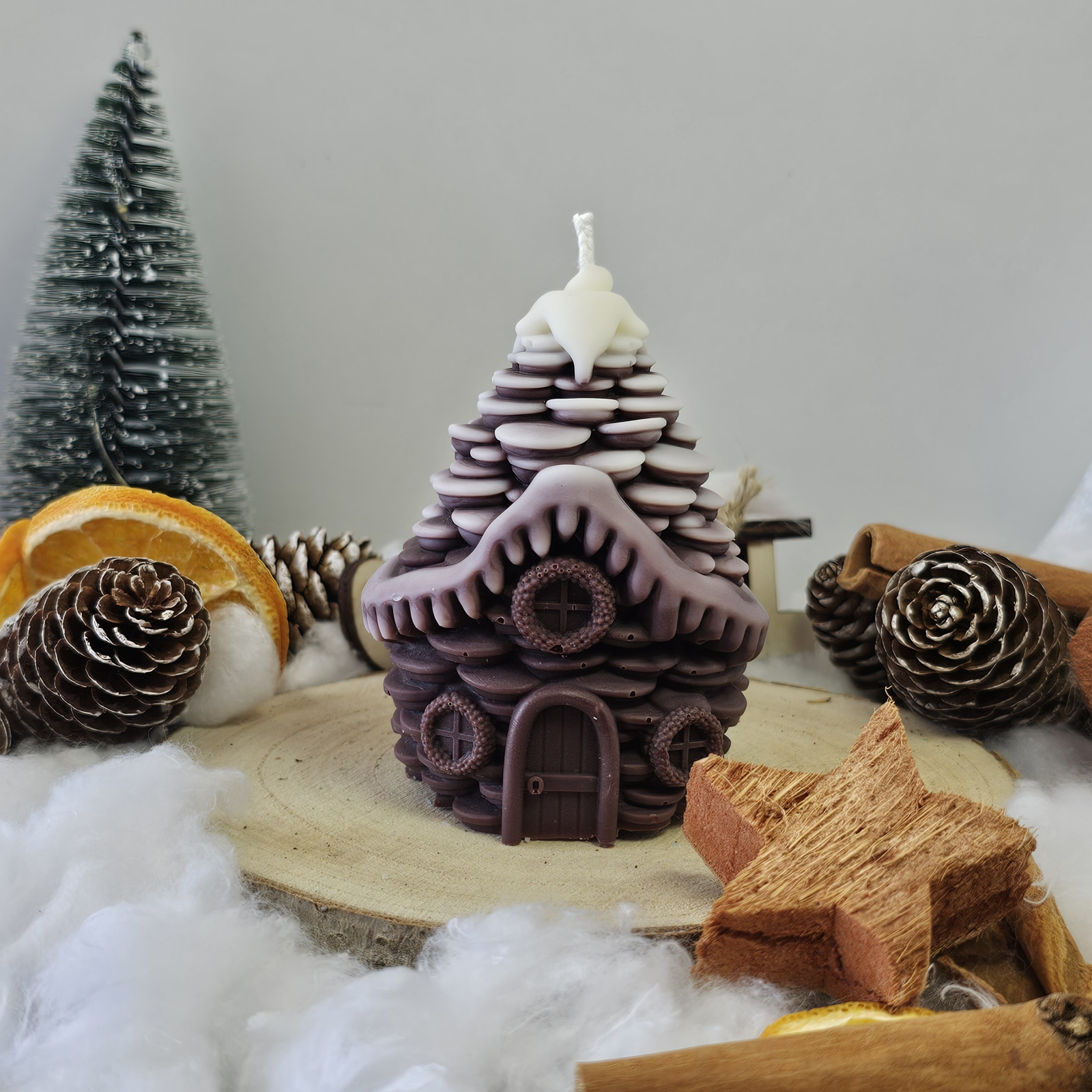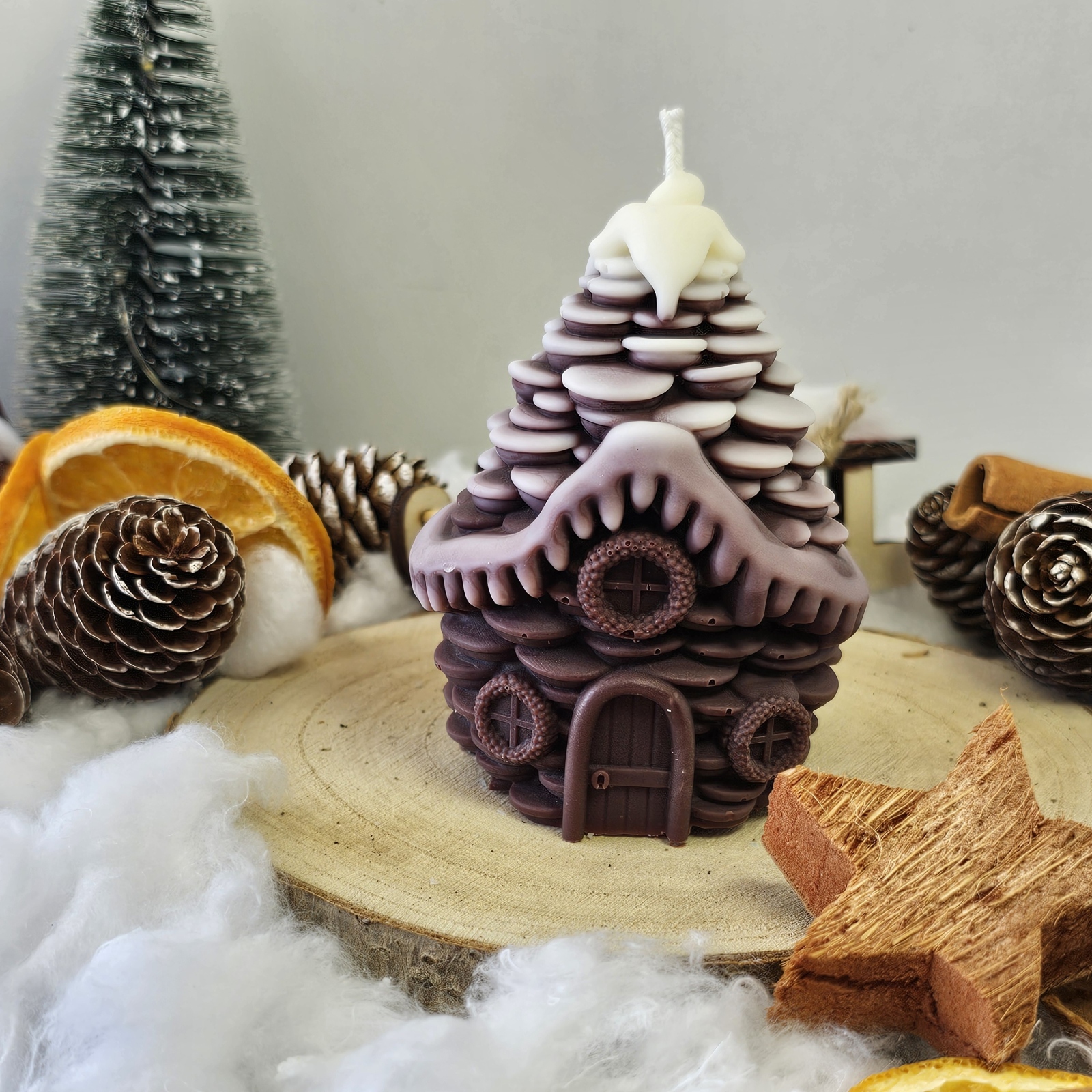 O lumânare decorativă care pare desprinsă dintr-un basm de iarnă. „Căsuța din Poveste – Fulgi de Vis” este turnată manual din ceară de soia 100% naturală, într-o formă unică ce amintește de o căsuță acoperită de zăpadă, cu acoperiș conic și detalii fermecătoare.