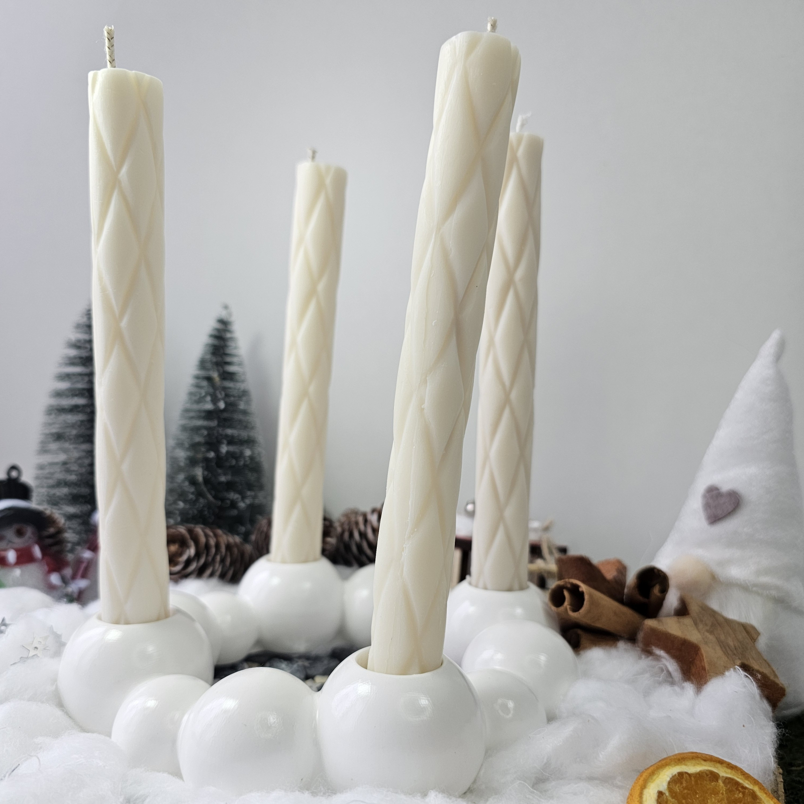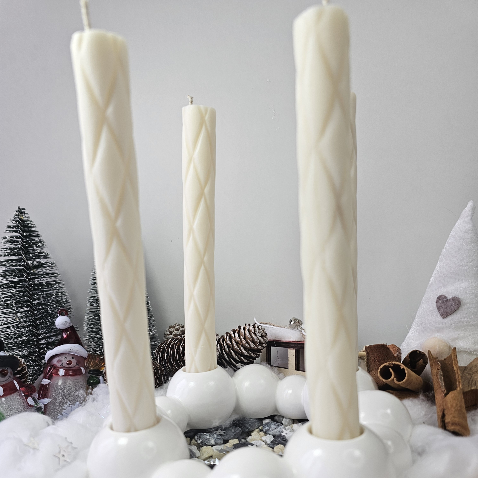 Suportul este hand-made, realizat din praf ceramic, cu un design elegant și versatil, ideal pentru aranjamente de iarnă, Advent sau decoruri cozy.