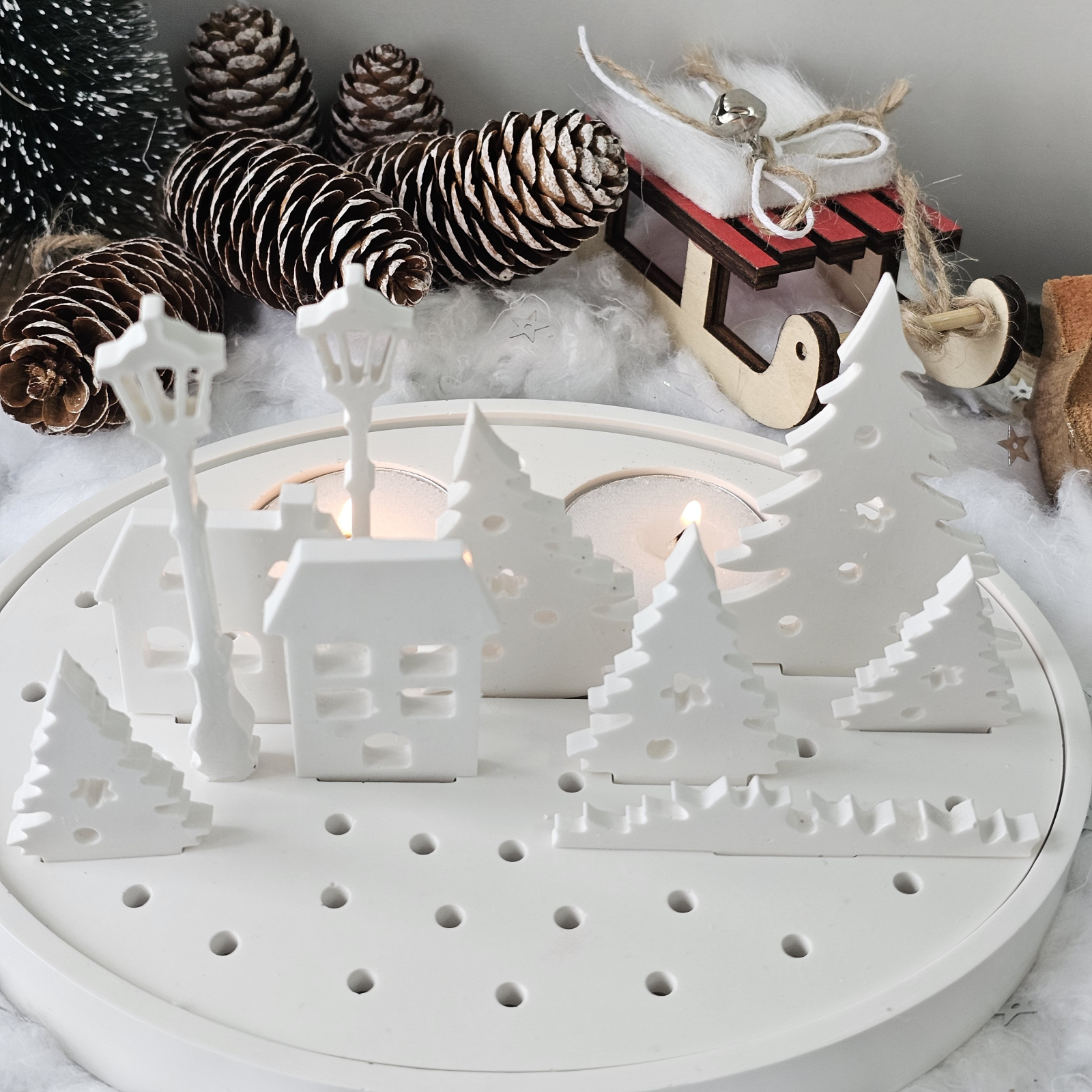 Ideal pentru vitrine de Crăciun, colțuri cozy sau cadouri cu suflet, „Satul Alb” transformă orice spațiu într-un peisaj de poveste.